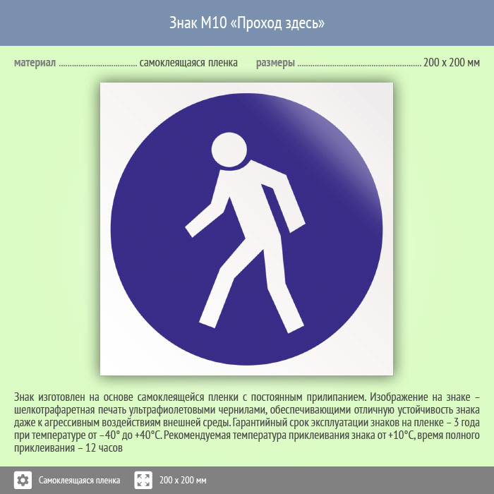 Знак M10 «Проход здесь» (пленка, 200х200 мм) в Магнитогорске купить