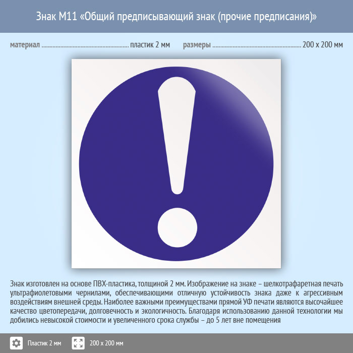 Знак M11 «Общий предписывающий знак (прочие предписания)» (пластик, 200х200 мм) в Магнитогорске купить