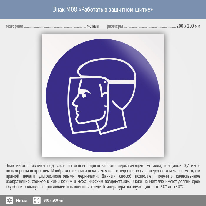 Знак M08 «Работать в защитном щитке» (металл, 200х200 мм) в Магнитогорске купить