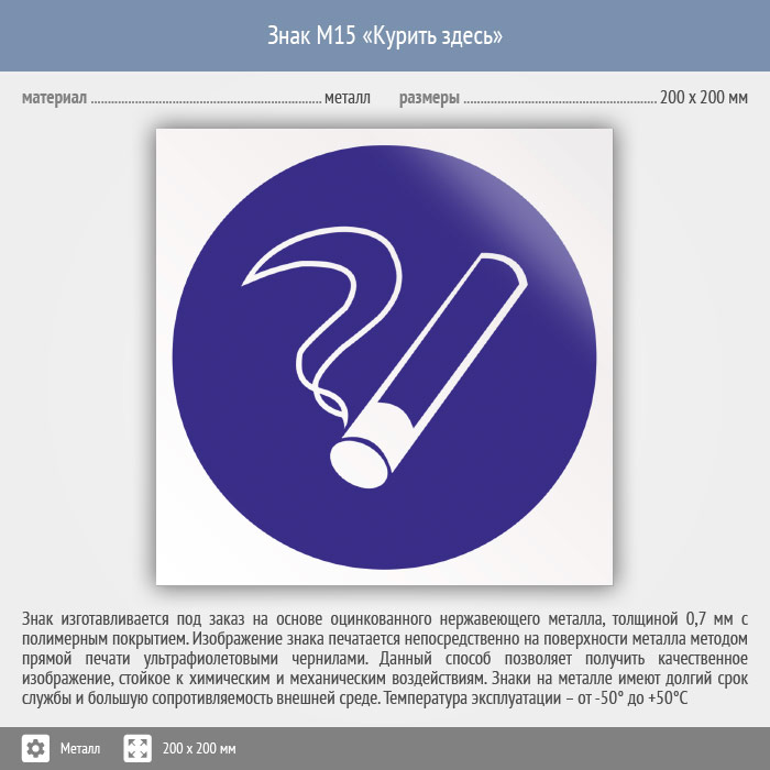 Знак M15 «Курить здесь» (исключен) (металл, 200х200 мм) в Магнитогорске купить