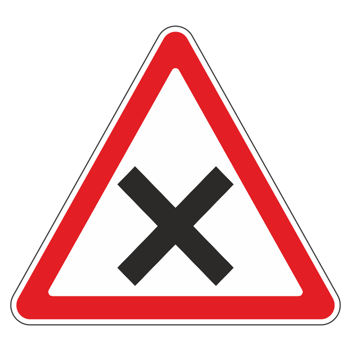 Дорожный знак 1.6 «Пересечение равнозначных дорог» (металл 0,8 мм, I типоразмер: сторона 700 мм, С/О пленка: тип В алмазная) в Магнитогорске купить