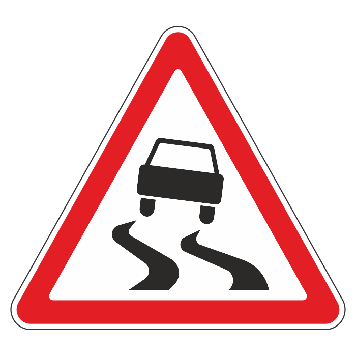 Дорожный знак 1.15 «Скользкая дорога» (металл 0,8 мм, I типоразмер: сторона 700 мм, С/О пленка: тип А инженерная) в Магнитогорске купить