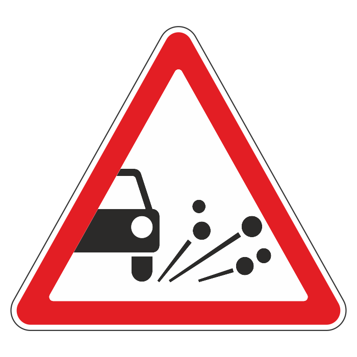 Дорожный знак 1.18 «Выброс гравия» (металл 0,8 мм, III типоразмер: сторона 1200 мм, С/О пленка: тип А инженерная) в Магнитогорске купить