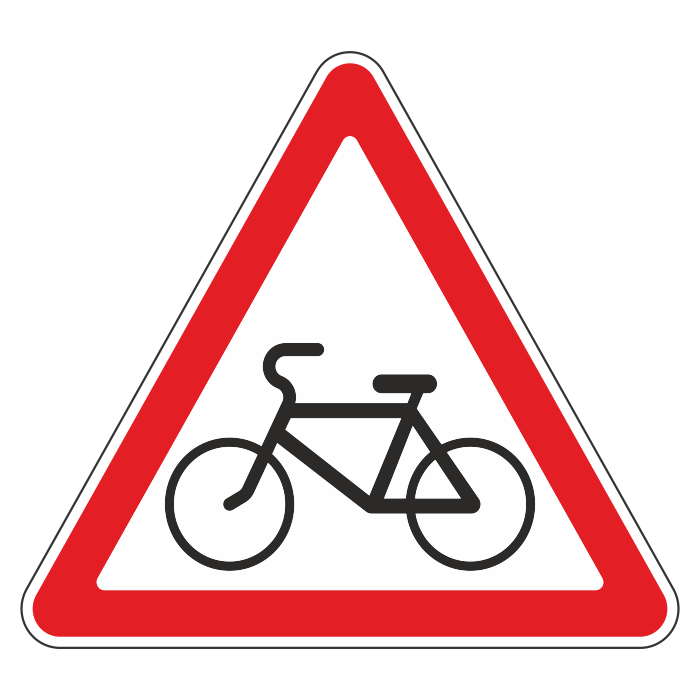 Дорожный знак 1.24 «Пересечение с велосипедной дорожкой или велопешеходной дорожкой» (металл 0,8 мм, I типоразмер: сторона 700 мм, С/О пленка: тип В алмазная) в Магнитогорске купить