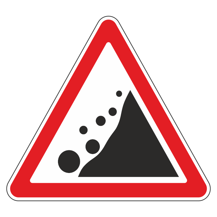 Дорожный знак 1.28 «Падение камней» (металл 0,8 мм, III типоразмер: сторона 1200 мм, С/О пленка: тип А инженерная) в Магнитогорске купить