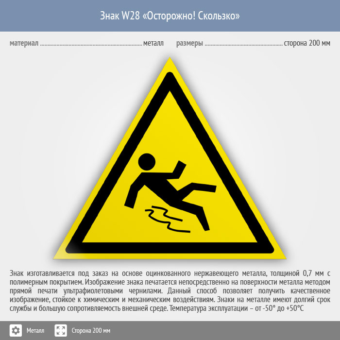 Знак W28 «Осторожно! скользко» (металл, сторона 200 мм) в Магнитогорске купить