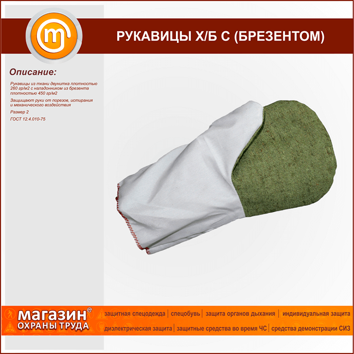 Рукавицы брезентовые с брезентовым наладонником ОП