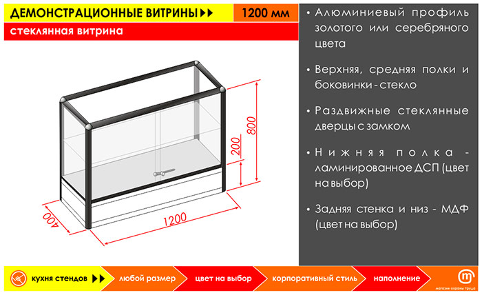Стеклянная витрина, 1200 мм в Магнитогорске купить