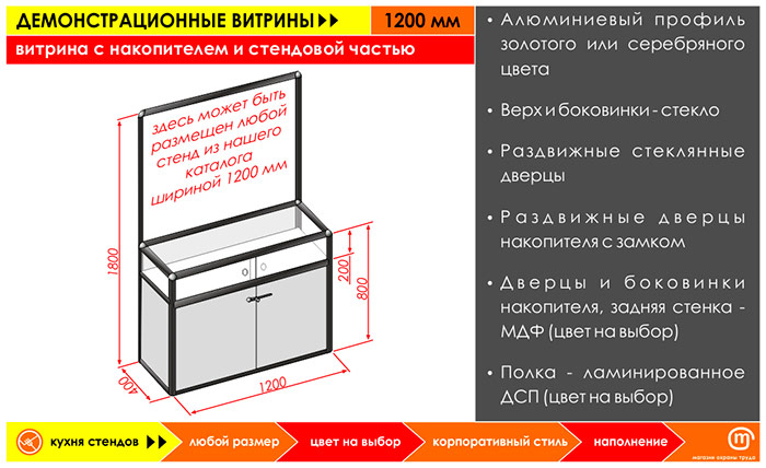 Витрина с накопителем и стендовой частью, 1200 мм в Магнитогорске купить
