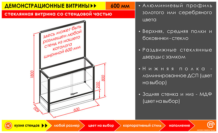Стеклянная витрина со стендовой частью, 600 мм в Магнитогорске купить