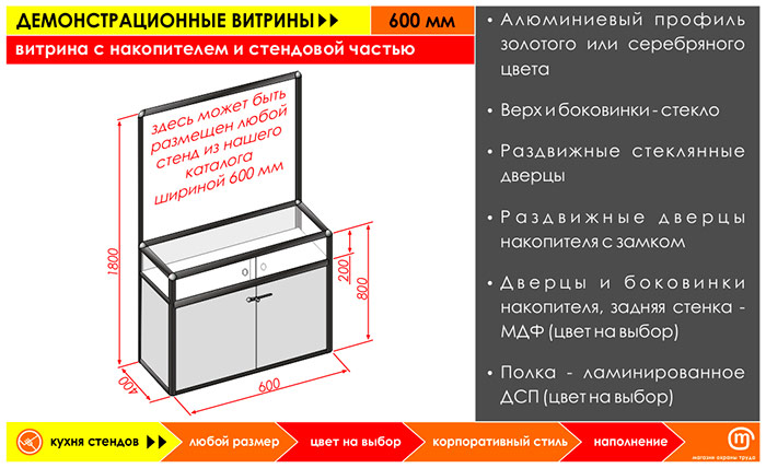 Витрина с накопителем и стендовой частью, 600 мм в Магнитогорске купить