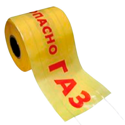 Лента сигнальная детекционная «Огнеопасно газ» ЛСГ-200, 200мм х 250м х 50мкм, два проводника в Магнитогорске купить