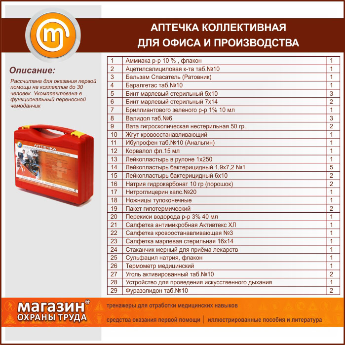 Аптечка КОЛЛЕКТИВНАЯ для офиса и производства (до 30 человек) - пластиковый чемодан в Магнитогорске купить