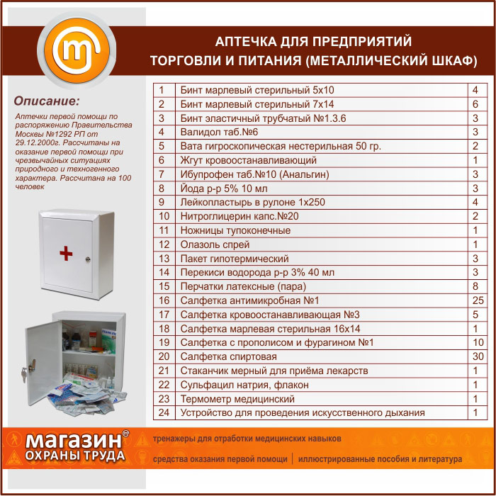 Аптечка для предприятий торговли и питания - (на 100 человек) - металлический шкаф в Магнитогорске купить