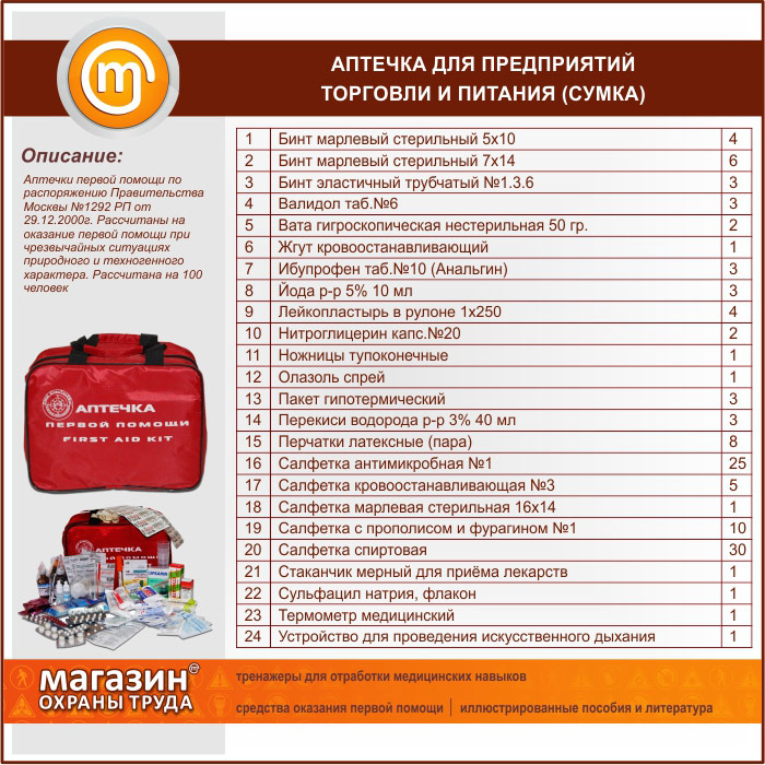 Аптечка для предприятий торговли и питания - (на 100 человек) - сумка в Магнитогорске купить