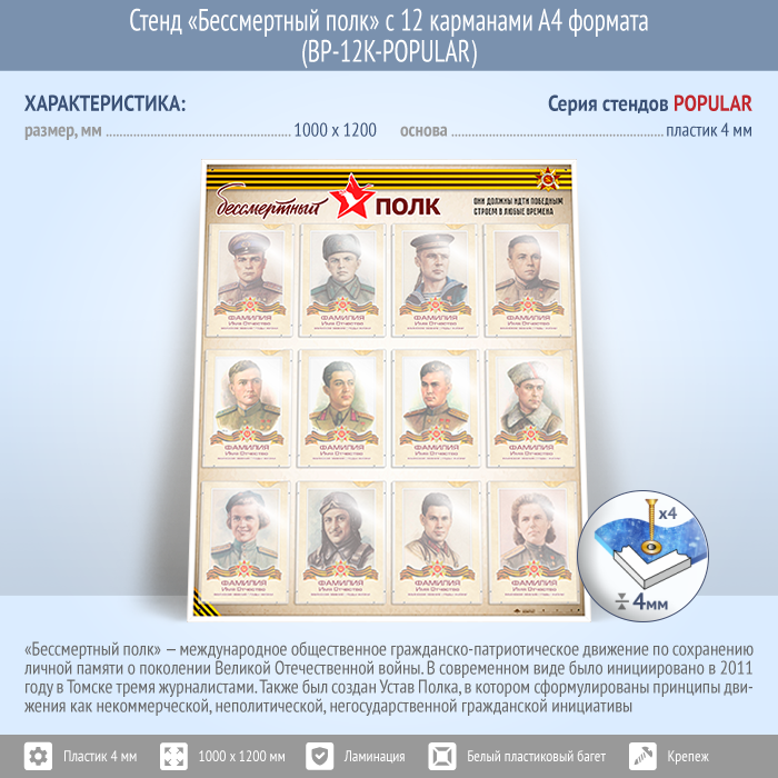 Стенд «Бессмертный полк» с 12 карманами А4 формата (BP-12K)