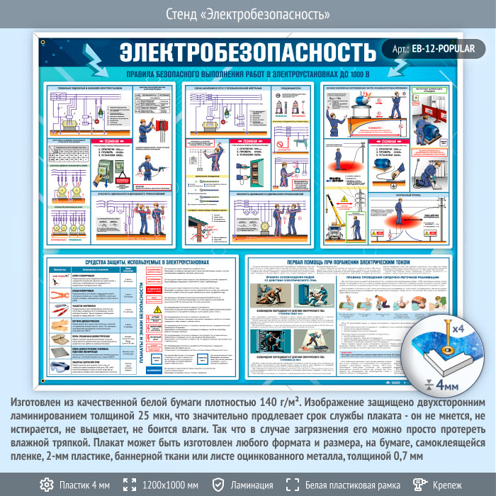 Стенд «Электробезопасность» (EB-12) это незаменимый инструмент для обеспечения безопасности на рабочем месте. Стенд поможет повысить уровень осведомленности и подготовленности сотрудников в области электробезопасности.