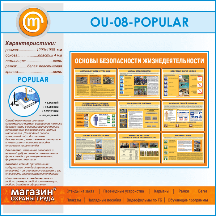 Стенд «Основы безопасности жизнедеятельности» (OU-08-POPULAR)