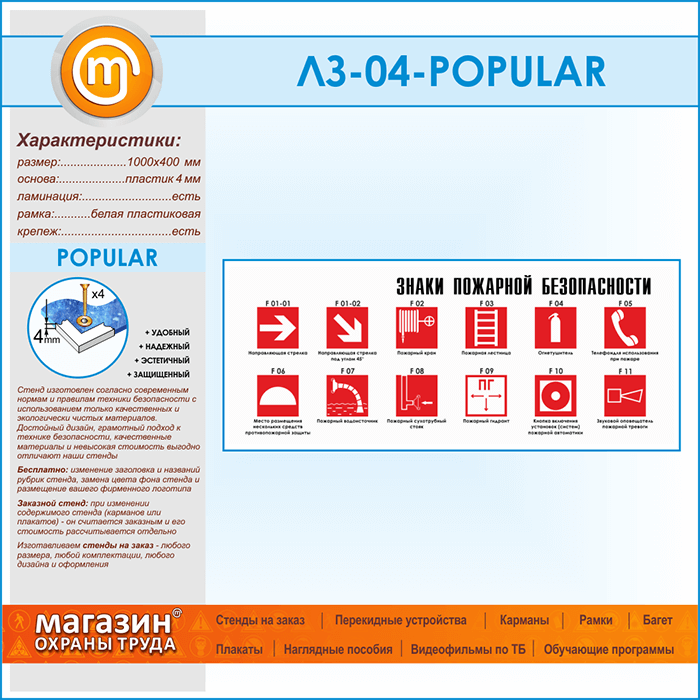 Стенд «Знаки пожарной безопасности» (LZ-04-POPULAR)
