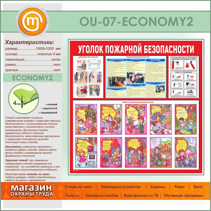 Стенд «Уголок пожарной безопасности» (OU-07-ECONOMY2) в Магнитогорске купить