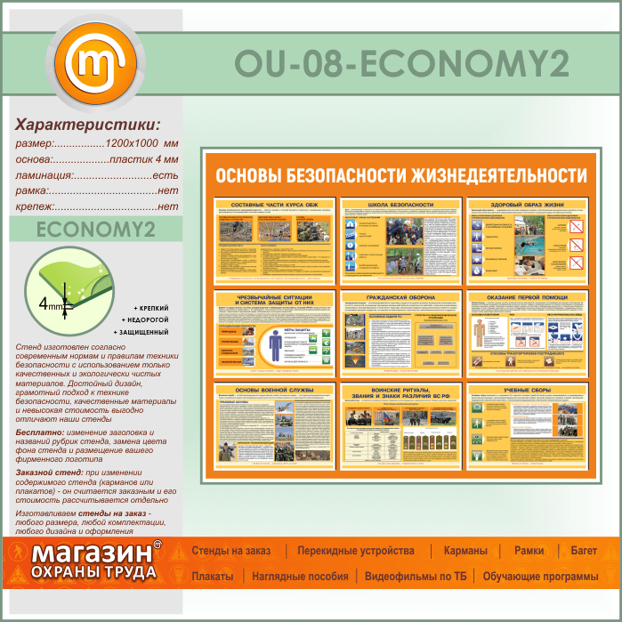 Стенд «Основы безопасности жизнедеятельности» (OU-08-ECONOMY2) в Магнитогорске купить