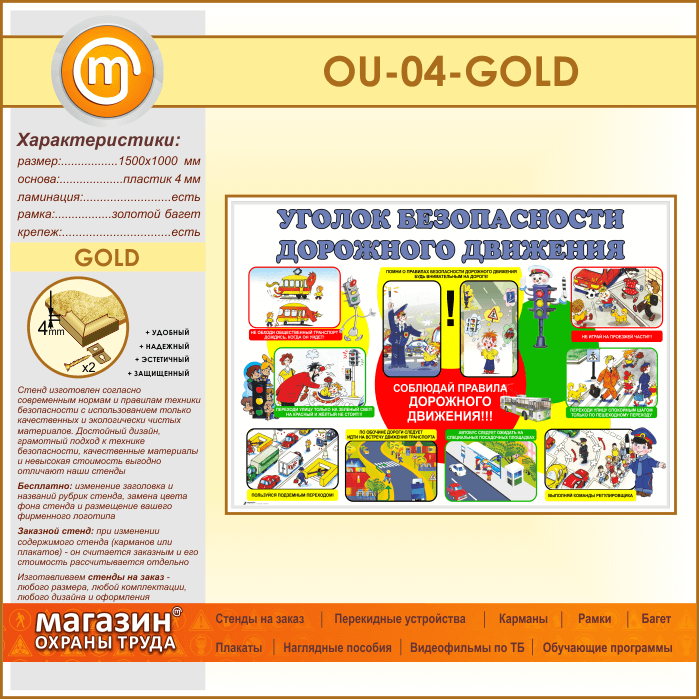 Стенд «Уголок безопасности дорожного движения» (OU-04-GOLD) в Магнитогорске купить