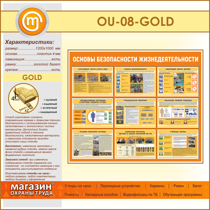 Стенд «Основы безопасности жизнедеятельности» (OU-08-GOLD) в Магнитогорске купить