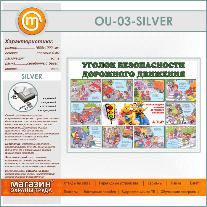 Стенд «Уголок безопасности дорожного движения» (OU-03-SILVER) в Магнитогорске купить