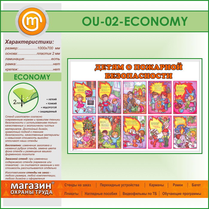 Стенд «Детям о пожарной безопасности» (OU-02-ECONOMY) в Магнитогорске купить