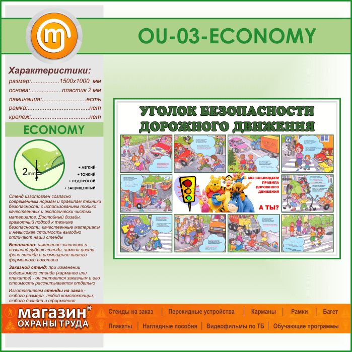 Стенд «Уголок безопасности дорожного движения» (OU-03-ECONOMY) в Магнитогорске купить