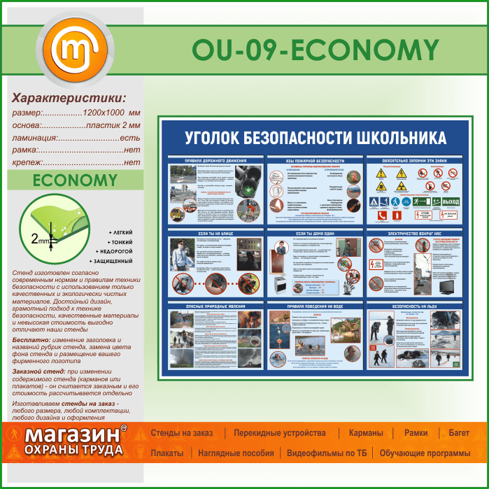 Стенд «Уголок безопасности школьника» (OU-09-ECONOMY) в Магнитогорске купить