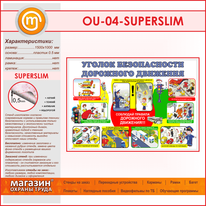 Стенд «Уголок безопасности дорожного движения» (OU-04-SUPERSLIM) в Магнитогорске купить