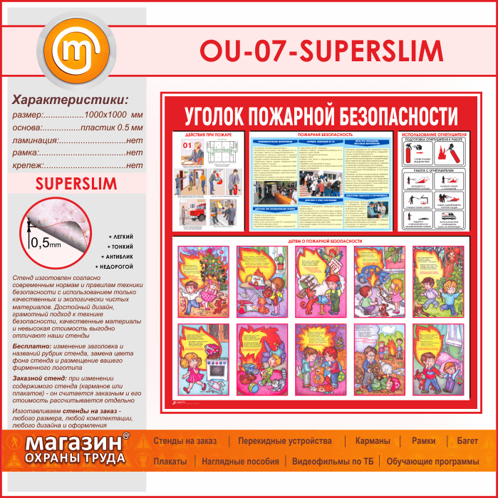 Стенд «Уголок пожарной безопасности» (OU-07-SUPERSLIM) в Магнитогорске купить