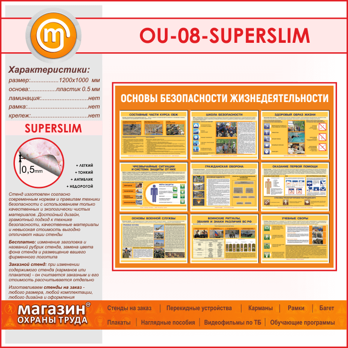 Стенд «Основы безопасности жизнедеятельности» (OU-08-SUPERSLIM) в Магнитогорске купить