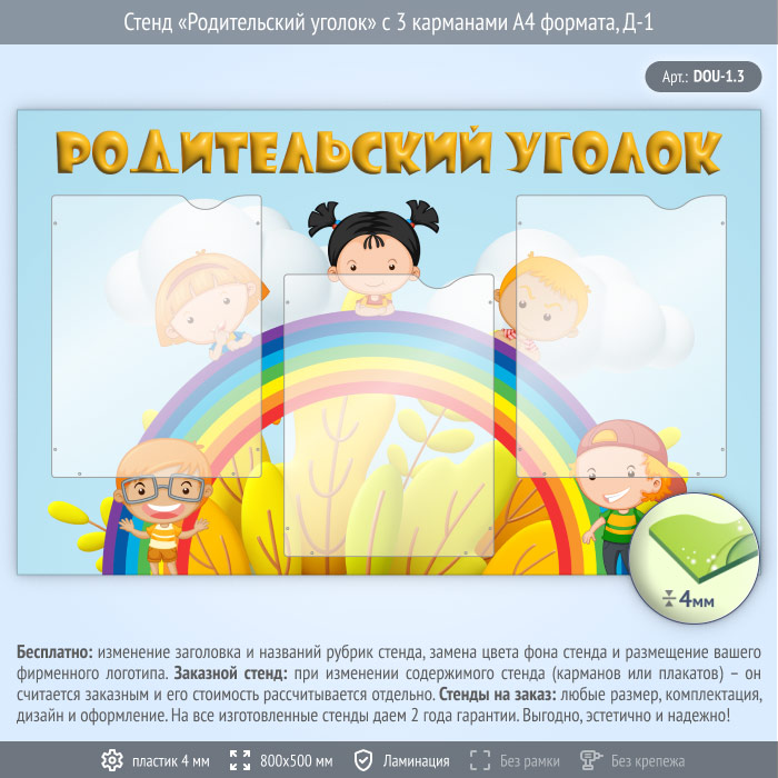 Стенд «Родительский уголок» с 3 карманами А4 формата (DOU-1.3) в Магнитогорске купить