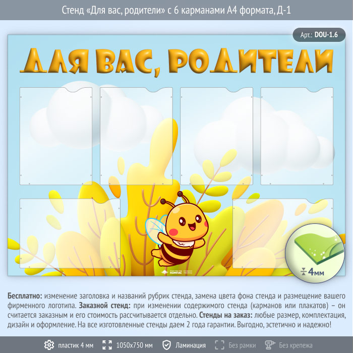 Стенд «Для вас, родители» с 6 карманами А4 формата (DOU-1.6) в Магнитогорске купить