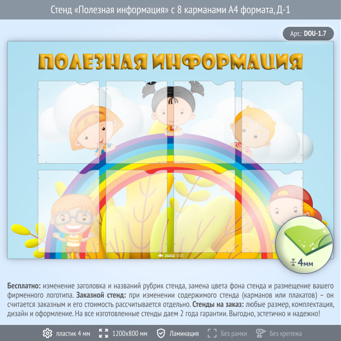 Стенд «Полезная информация» с 8 карманами А4 формата (DOU-1.7) в Магнитогорске купить