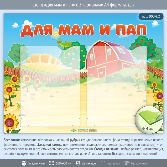 Стенд «Для мам и пап» с 2 карманами А4 формата (DOU-2.2) в Магнитогорске купить