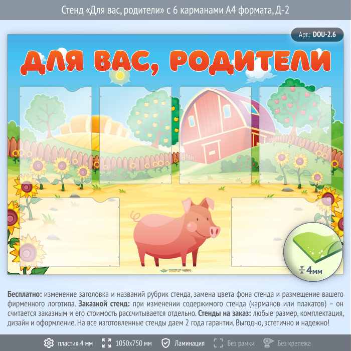 Стенд «Для вас, родители» с 6 карманами А4 формата (DOU-2.6) в Магнитогорске купить