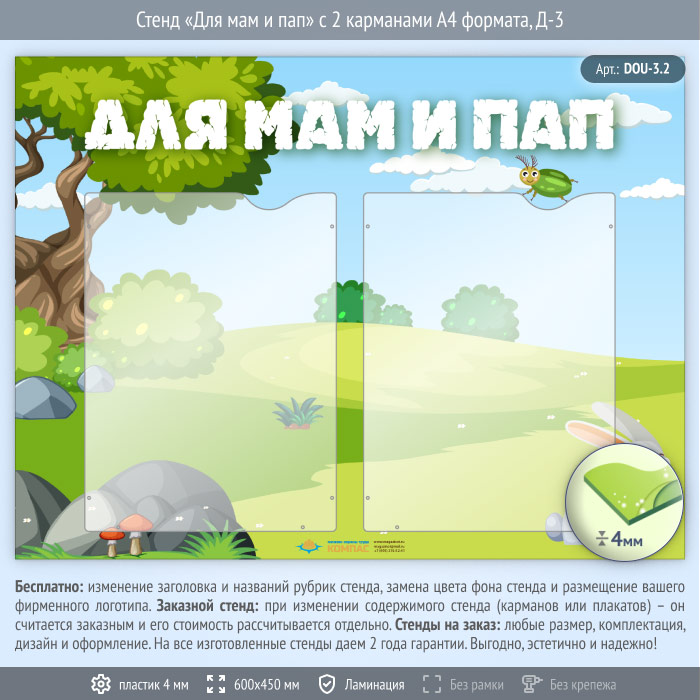 Стенд «Для мам и пап» с 2 карманами А4 формата (DOU-3.2) в Магнитогорске купить