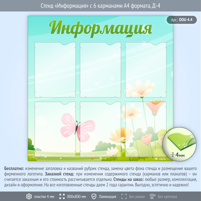 Стенд «Информация» с 6 карманами А4 формата (DOU-4.4) в Магнитогорске купить