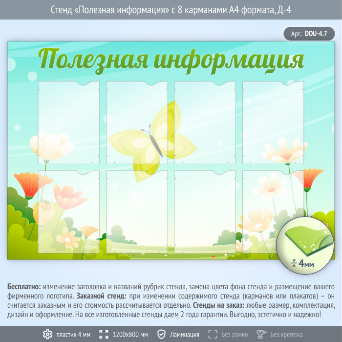 Стенд «Полезная информация» с 8 карманами А4 формата (DOU-4.7) в Магнитогорске купить