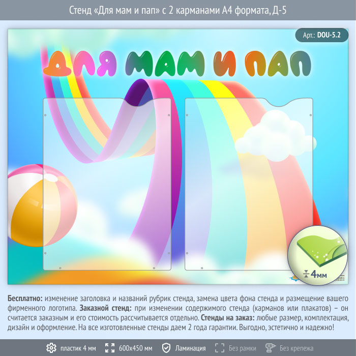 Стенд «Для мам и пап» с 2 карманами А4 формата (DOU-5.2) в Магнитогорске купить