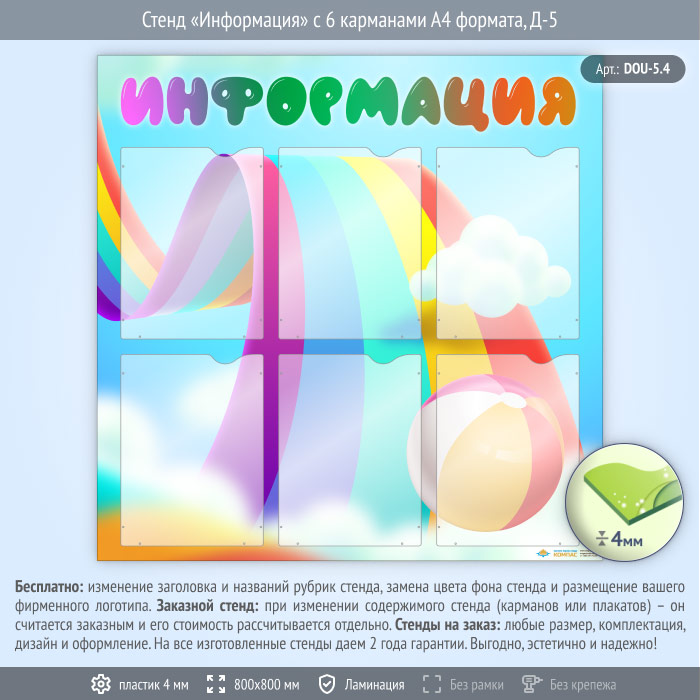 Стенд «Информация» с 6 карманами А4 формата (DOU-5.4) в Магнитогорске купить