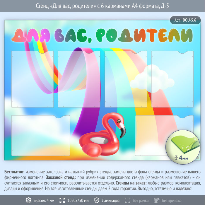 Стенд «Для вас, родители» с 6 карманами А4 формата (DOU-5.6) в Магнитогорске купить