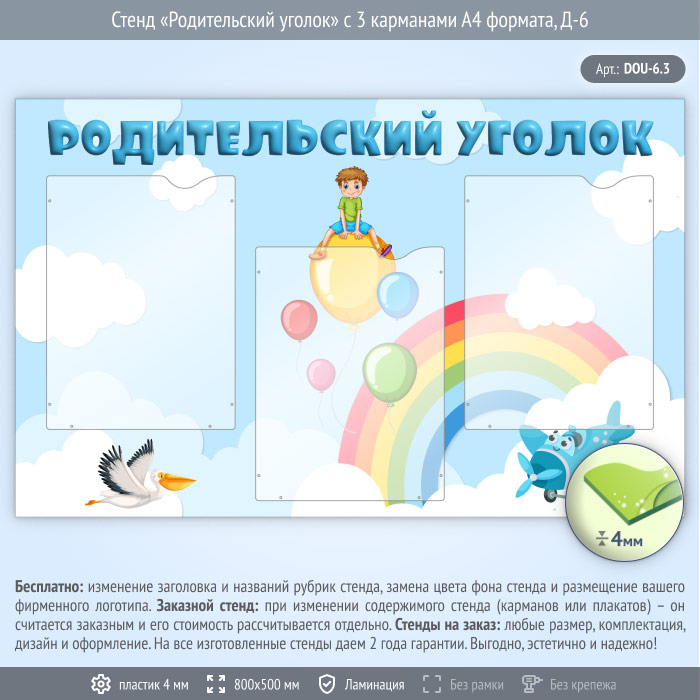Стенд «Родительский уголок» с 3 карманами А4 формата (DOU-6.3) в Магнитогорске купить