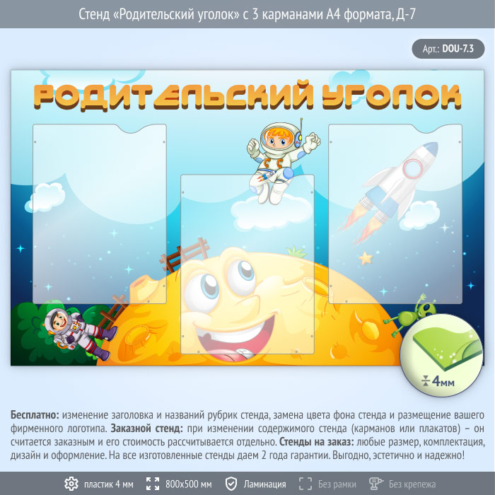 Стенд «Родительский уголок» с 3 карманами А4 формата (DOU-7.3) в Магнитогорске купить