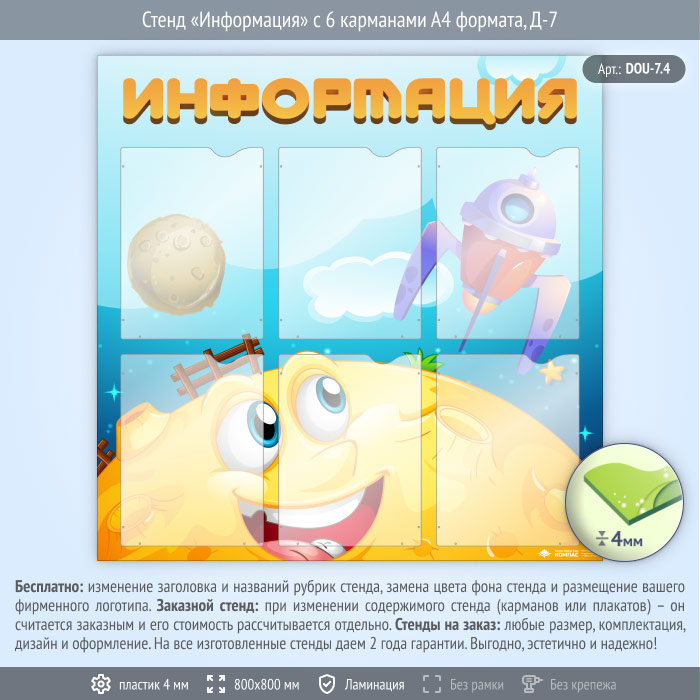 Стенд «Информация» с 6 карманами А4 формата (DOU-7.4) в Магнитогорске купить