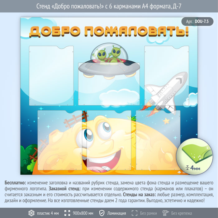 Стенд «Добро пожаловать!» с 6 карманами А4 формата (DOU-7.5) в Магнитогорске купить