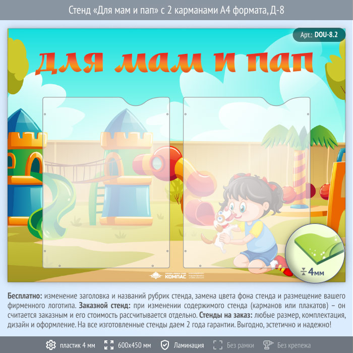 Стенд «Для мам и пап» с 2 карманами А4 формата (DOU-8.2) в Магнитогорске купить